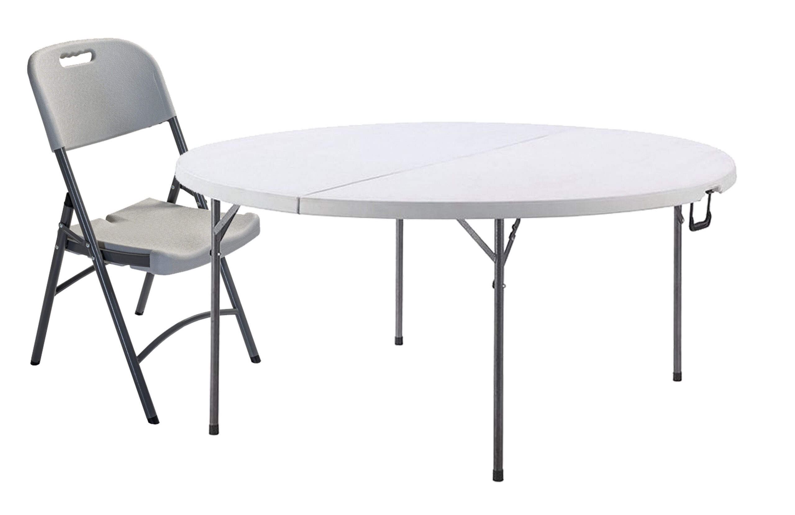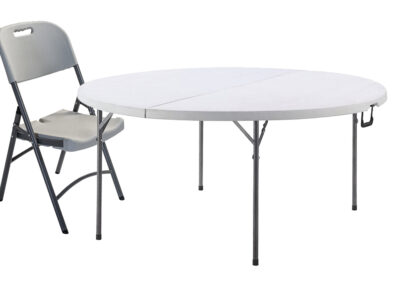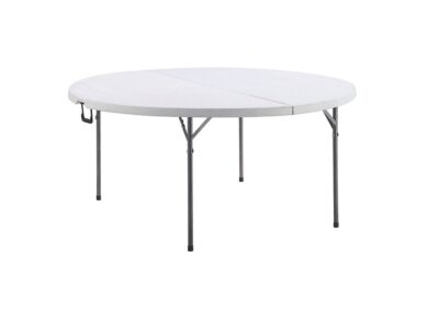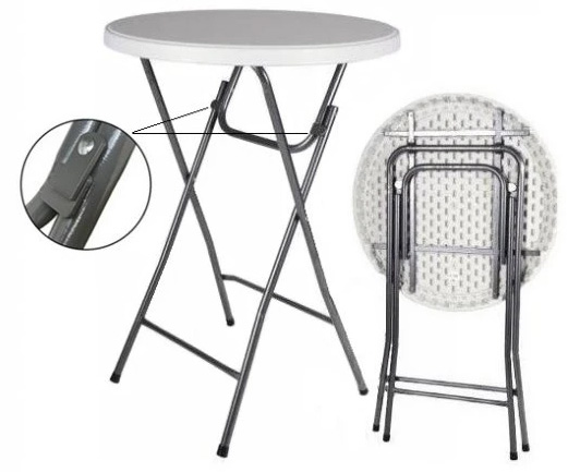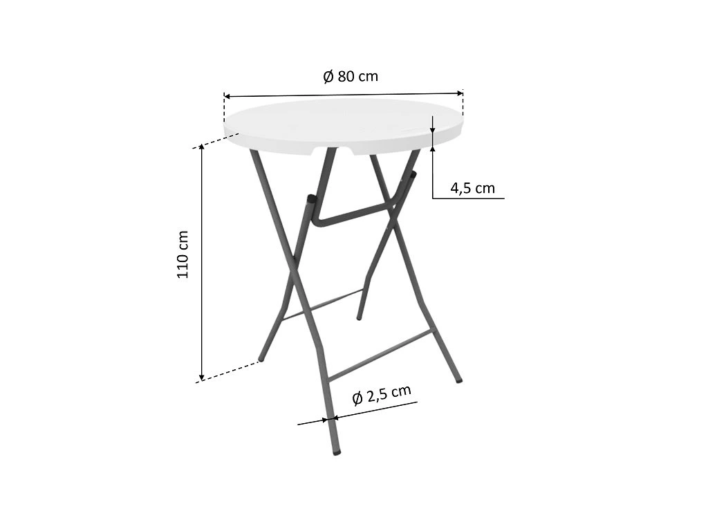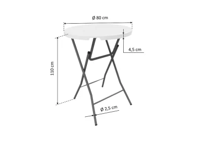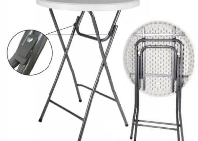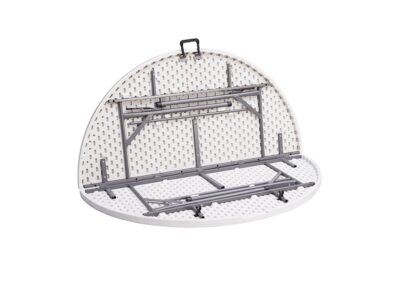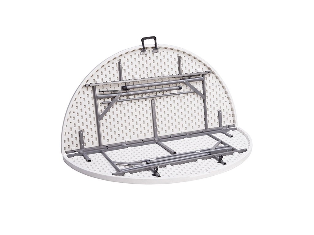 Skládací stůl, který je pro lepší manipulaci půlený. Vhodný pro stravování 4 až 10 osob (dle zvoleného průměru). Ideální na různé trendy eventy – svatby, oslavy, firemní akce – všude, kde chcete na své hosty zapůsobit. Vysoká odolnost svrchní polyethylenové desky.
